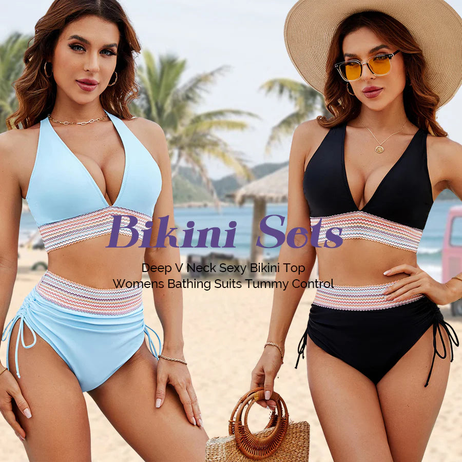 2025 High Waisted Tummy Control Color Block Bikini Sets