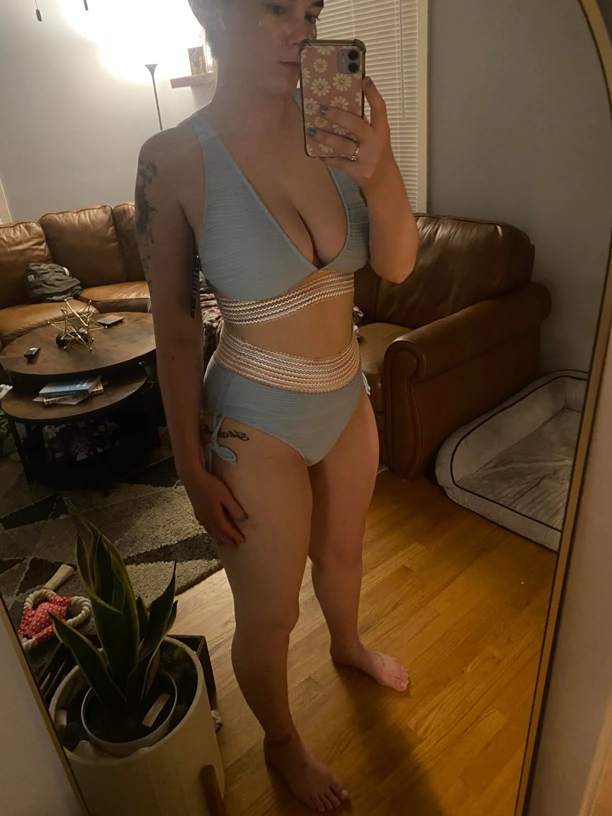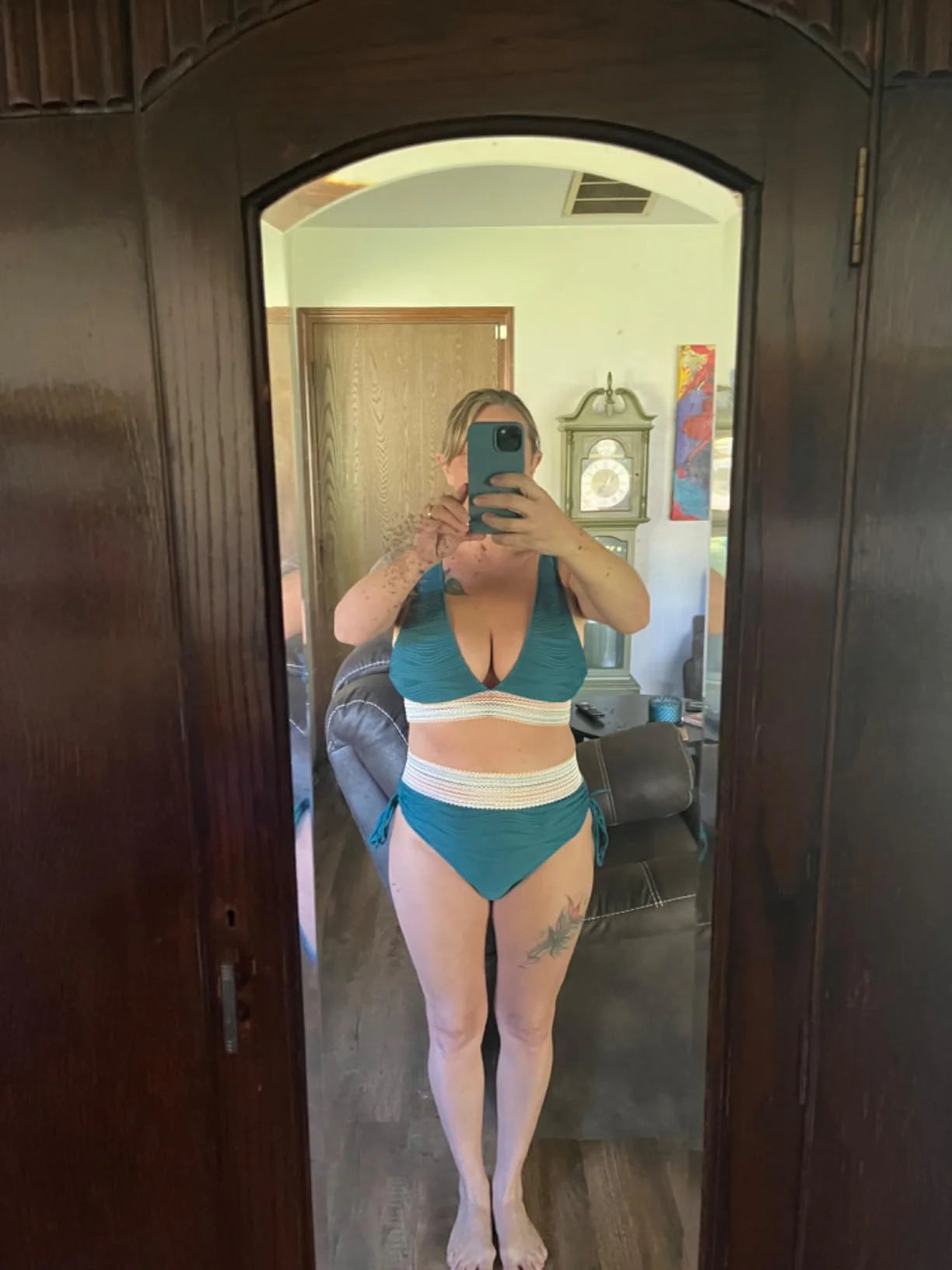 I love this suit💕💕 Bought it on a whim but ended up loving it . I’m 5’5” and 185 pounds , I’m very short waisted and it still looked nice ✅ Excuse the saggy “girls” I’m 50 and nursed 8 children 🤪