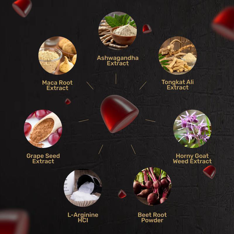 Formulated with science-backed ingredients like L-Arginine, Tongkat Ali, and Maca to naturally enhance blood flow, stamina, and energy—no synthetic stimulants needed.