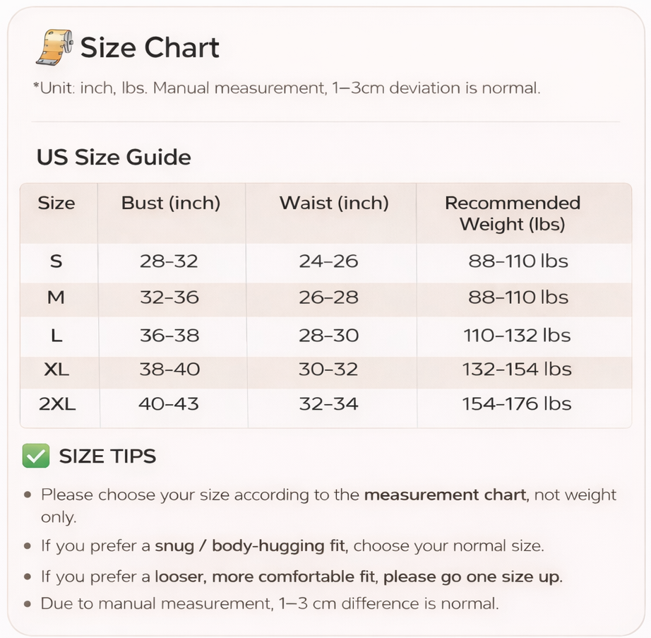 Four-way stretch fabric hugs your body to smooth side bulges and shape the waist and back for instantly better curves. No bulky shapewear needed—just a sleek, sculpted look that enhances the bust and slims the waist. 💫