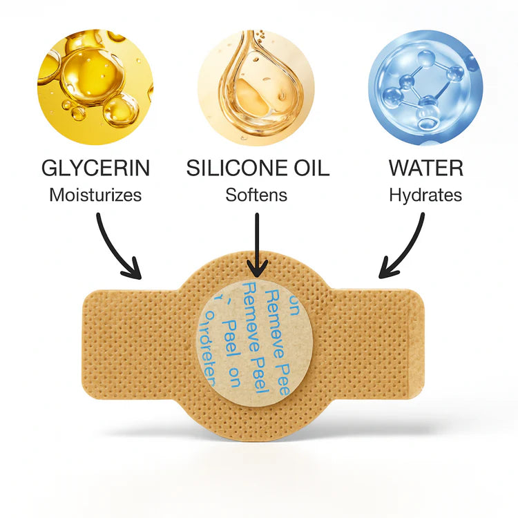 Our patches are infused with Glycerin, Silicone Oil, and Water — a powerful trio that moisturizes, softens, and hydrates even the most stubborn nails.