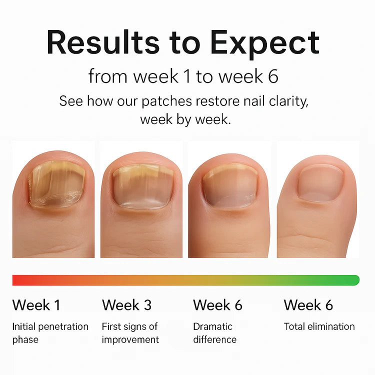 Watch your nail health transform with consistent use.In just1 week, our patches begin penetrating to fight fungus at its source. ByWeek 3, you’ll notice the first signs of improvement — clearer, smoother nails.