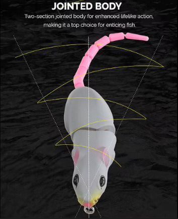 Just twitch, reel, or crank, and watch the lifelike swimming actions of this revolutionary lure come to life. With movements that mimic a real rat, it's sure to attract more catches and provoke predator fish to strike. Get ready for heart-pounding action that will leave you hooked!