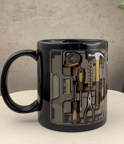 Featuring an ergonomic C-shaped handle, this mug offers a secure and comfortable grip, helping reduce spills during busy mornings or work breaks. The stylish mechanic toolbox design, complete with wrench tool graphics printed on both sides, adds personality and flair to any desk or tool bench.