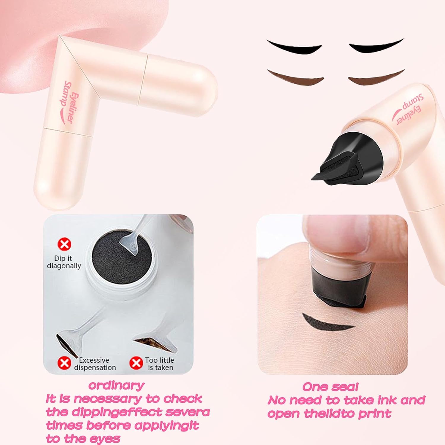 Ditch the liner stress. With the Double Eyeliner Stamp,flawless, long-lasting eye makeup is just one press away!